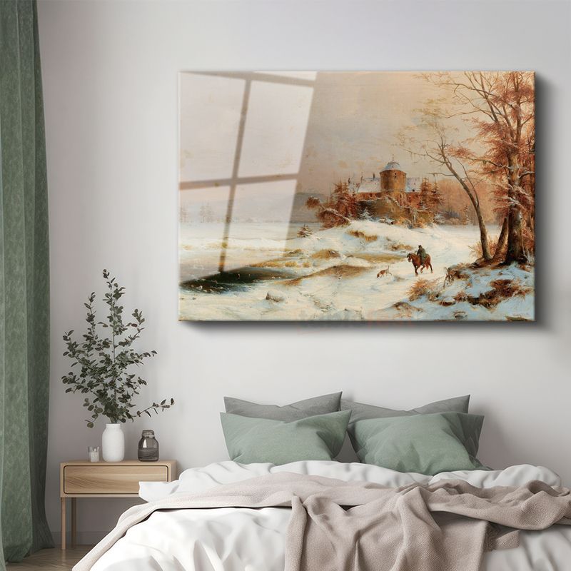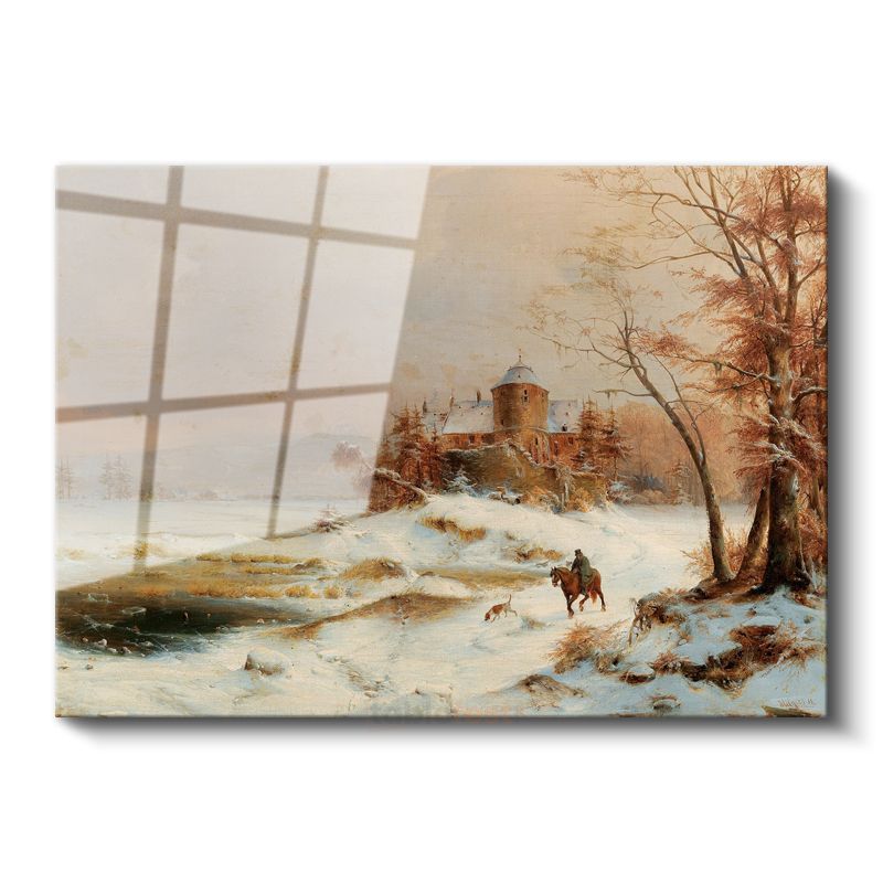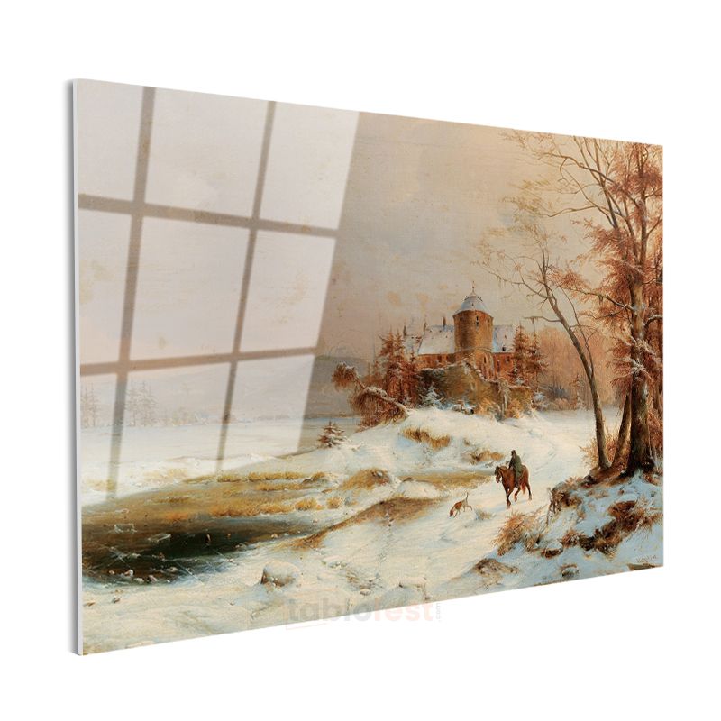 Andreas Schelfhout - Kış Manzarası Cam Tablo
