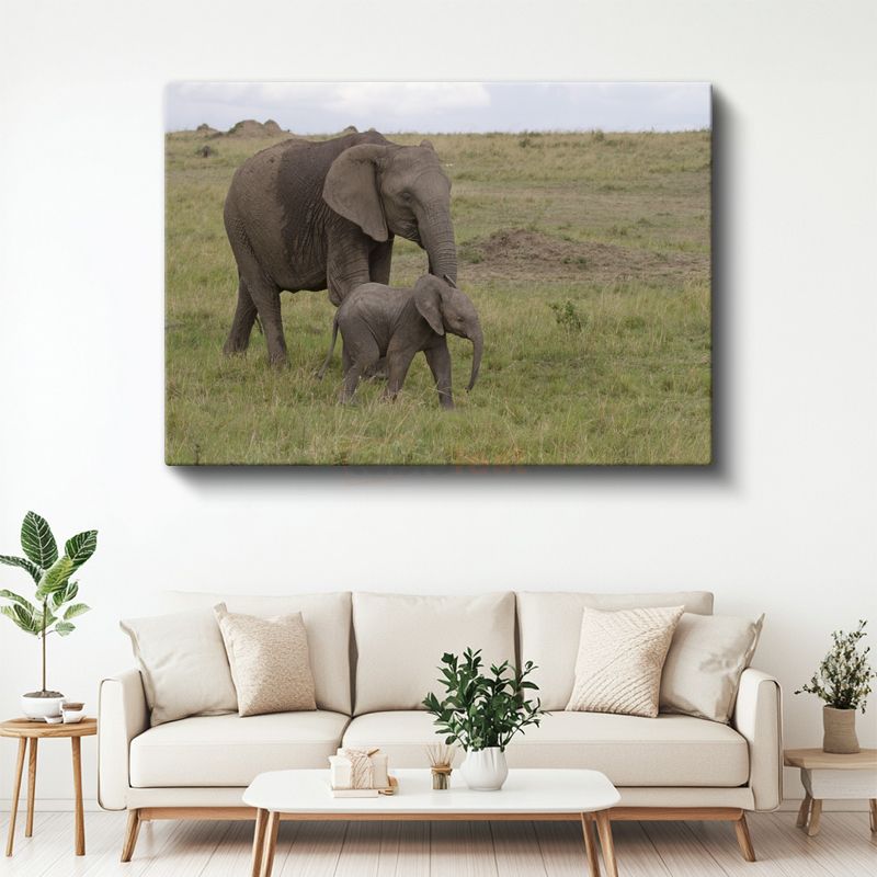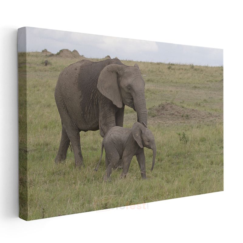 Anne ve Yavru Fil - Doğada Sevgi Bağı Kanvas Tablo