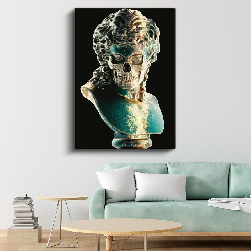 Antik Metamorfoz - Turkuaz Detaylı Sanatsal Büst Kanvas Tablo