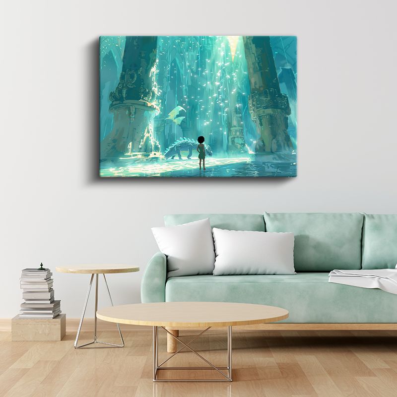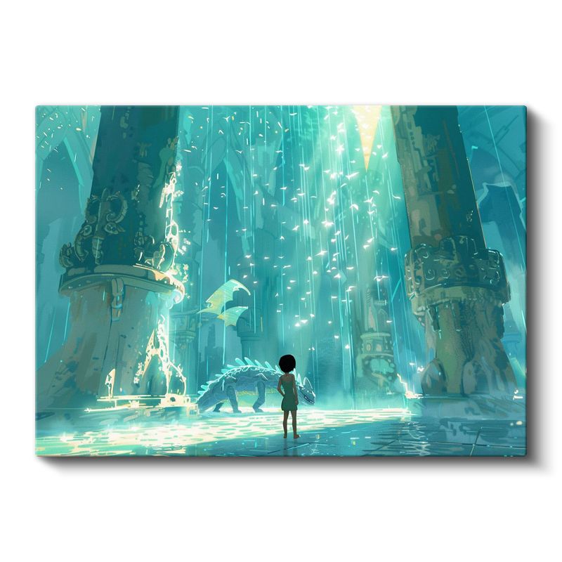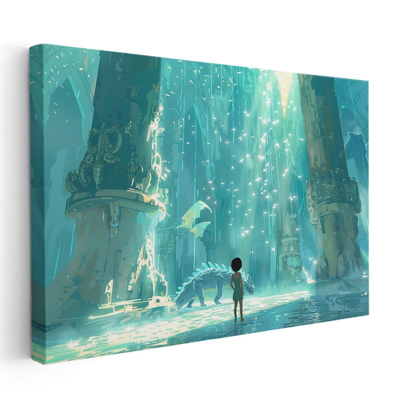 Antik Tapınak - Turkuaz Işıklar Anime Kanvas Tablo