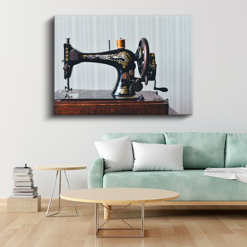 Antika Dikiş Makinesi - El İşçiliği Detaylı Kanvas Tablo