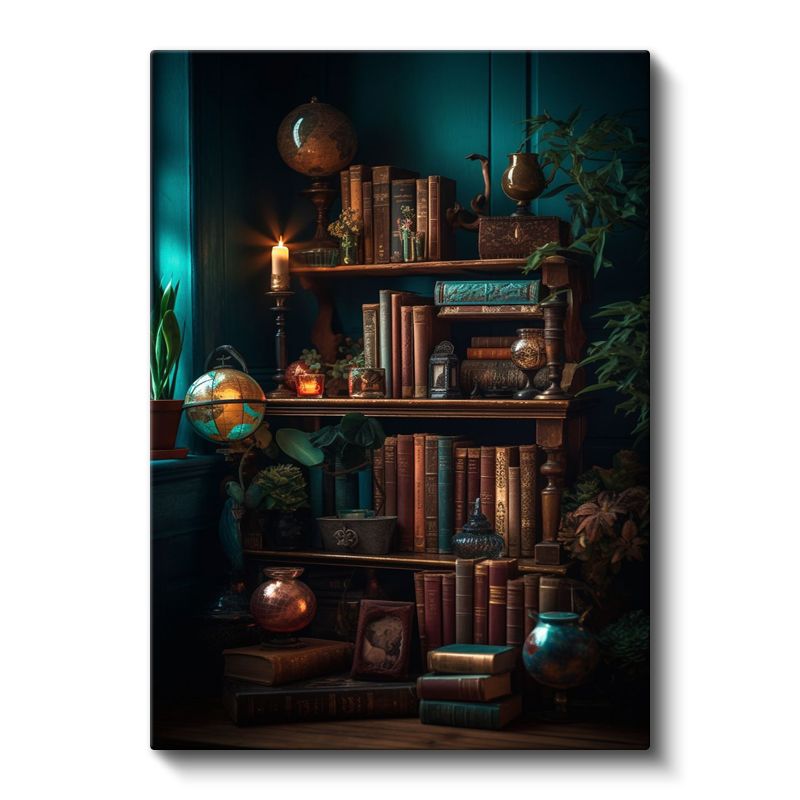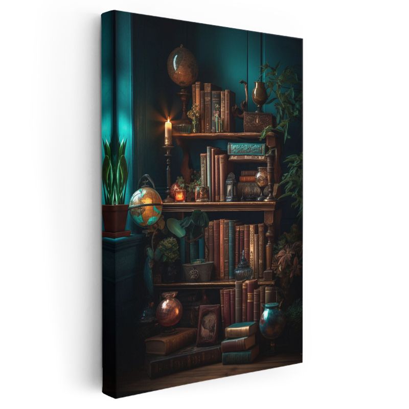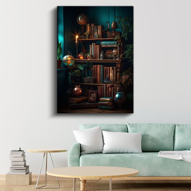 Antika Kütüphane - Turkuaz Duvar Koleksiyonu Kanvas Tablo
