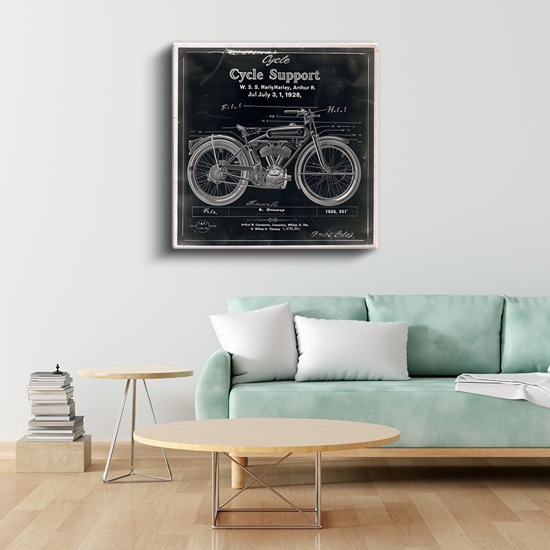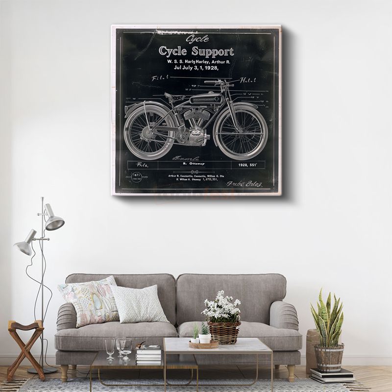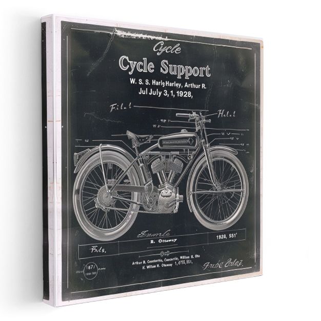 Antika Motosiklet Patenti - Harley Teknik Çizim Kanvas Tablo