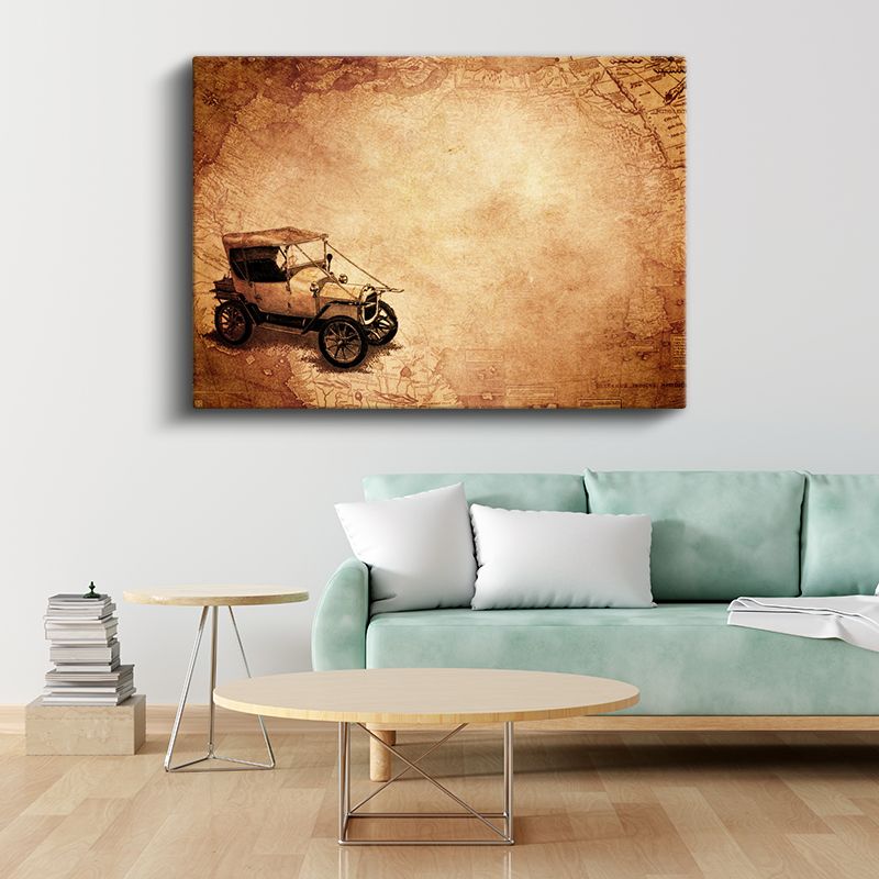 Antika Otomobil - Nostaljik Seyahat Temalı Kanvas Tablo