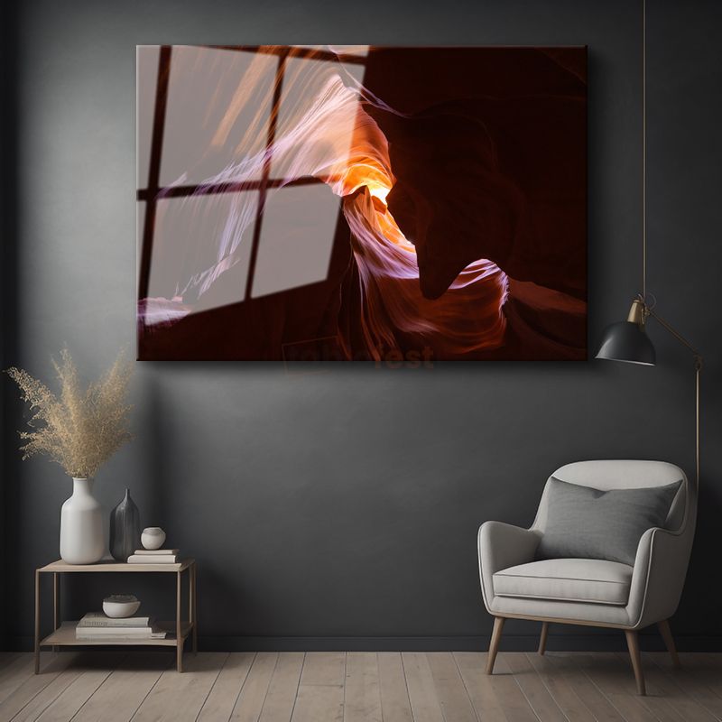 Antilop Kanyonu - Işık Huzmeli Kaya Oluşumları Cam Tablo