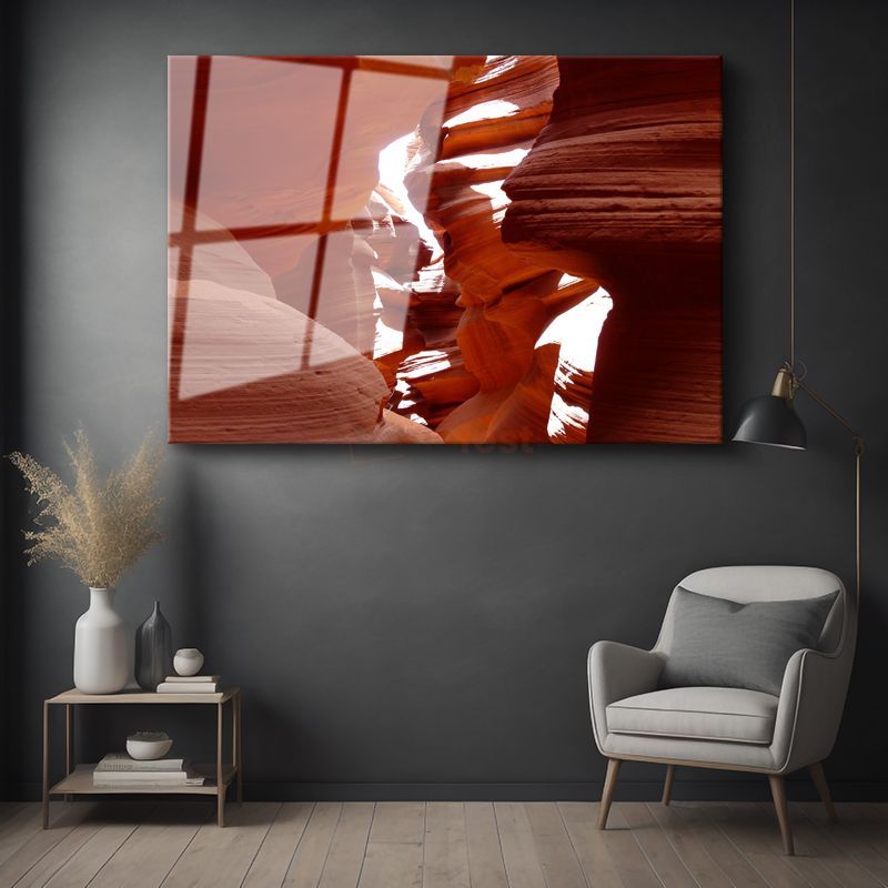 Antilop Kanyonu - Kızıl Kayaların Büyüleyici Işık Oyunu Cam Tablo
