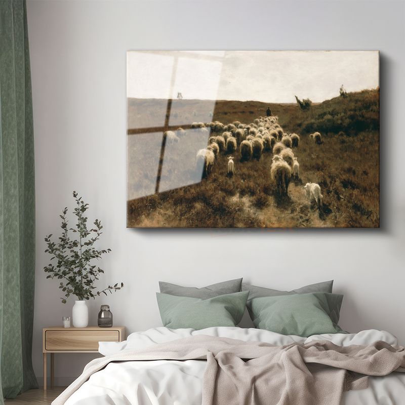 Anton Mauve - Çoban ve Koyun Sürüsü Cam Tablo