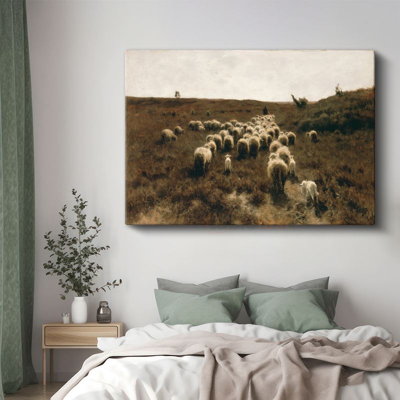 Anton Mauve - Çoban ve Koyun Sürüsü Kanvas Tablo