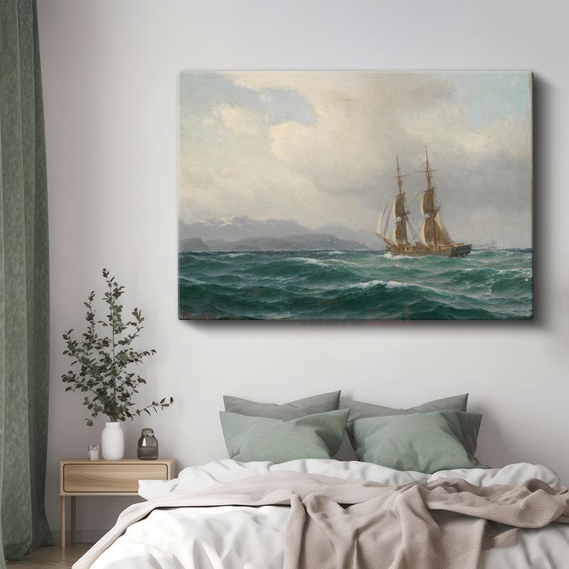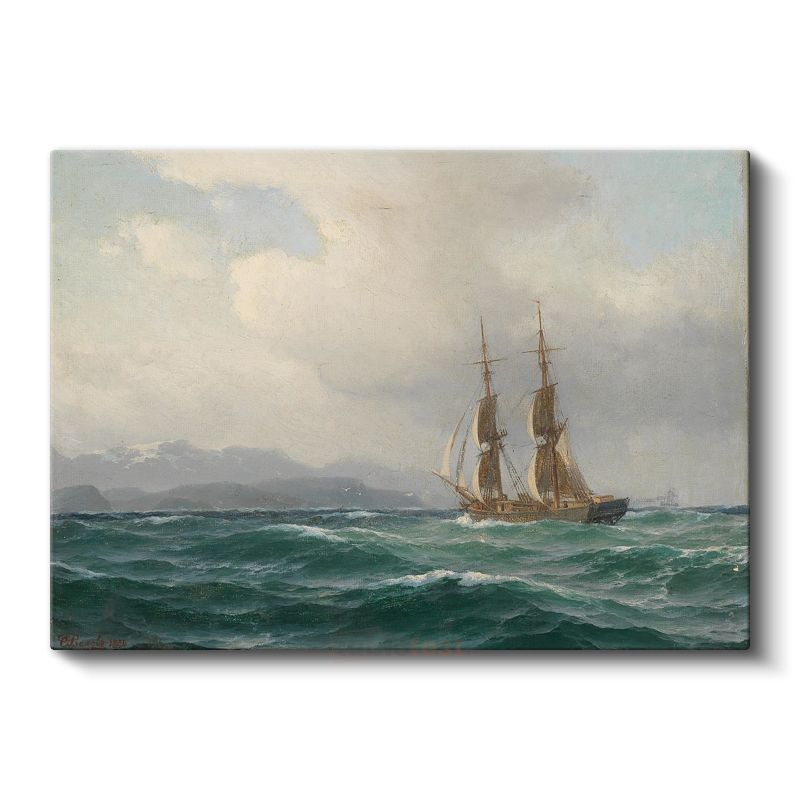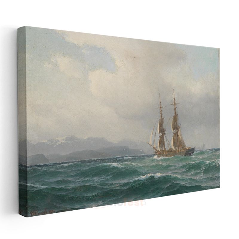 Anton Melbye - Dalgalı Denizde Yelkenli Kanvas Tablo