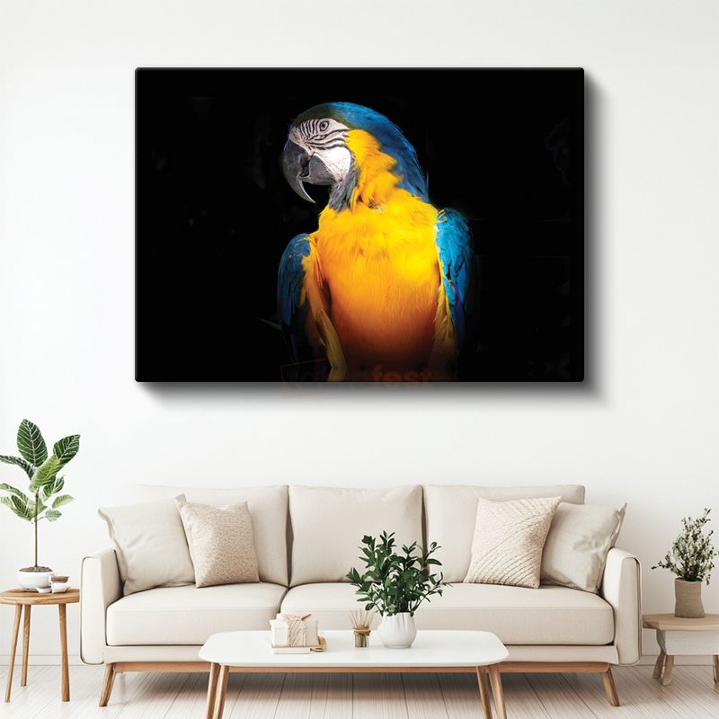 Ara Papağanı - Mavi ve Sarı Tüyleriyle Tropikal Güzellik Kanvas Tablo