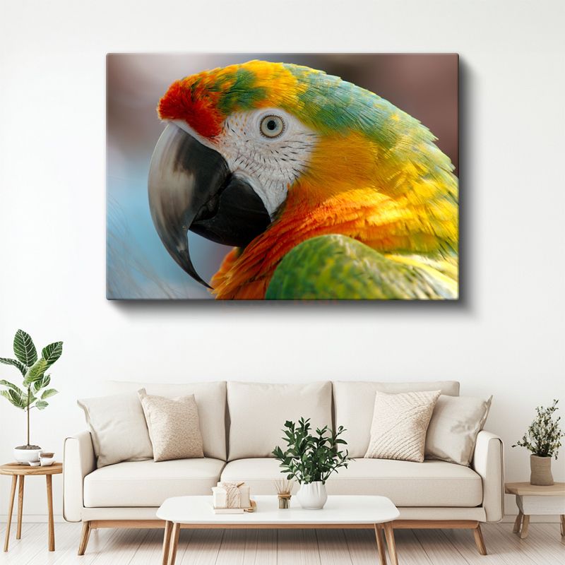 Ara Papağanı - Renkli Tüyleriyle Yakın Portre Kanvas Tablo