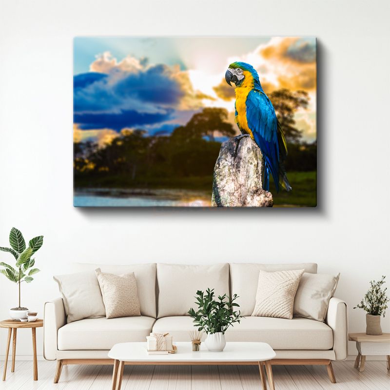 Ara Papağanı - Tropikal Kuş Portresi Kanvas Tablo