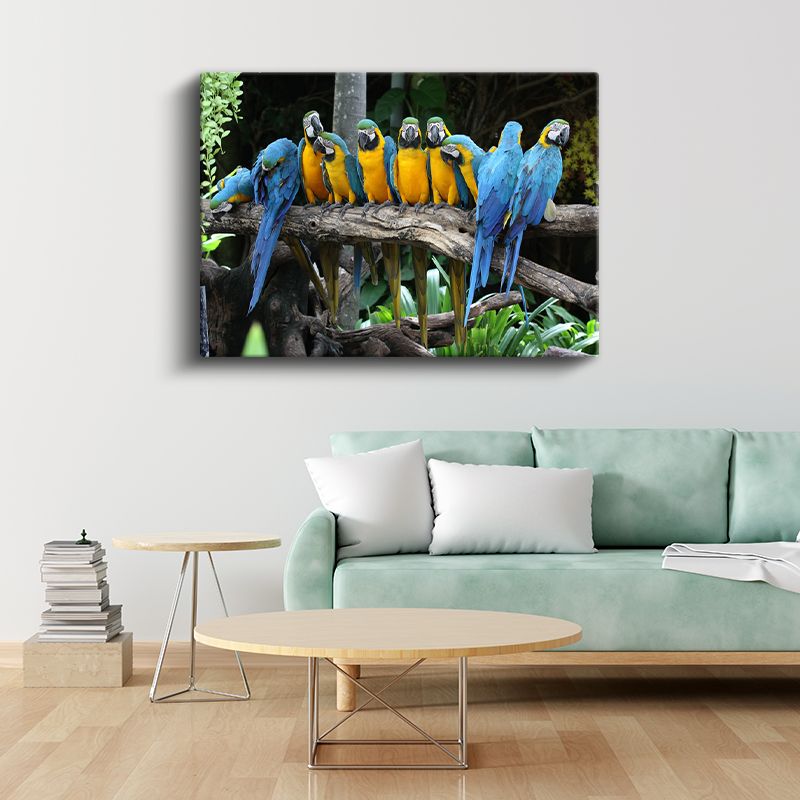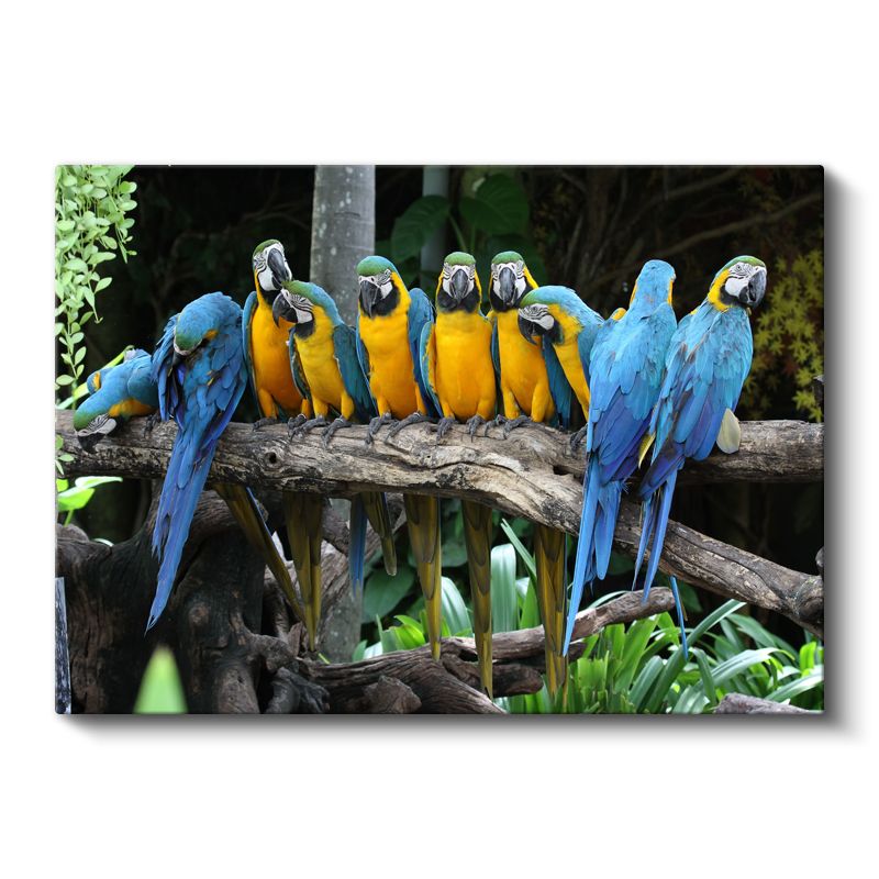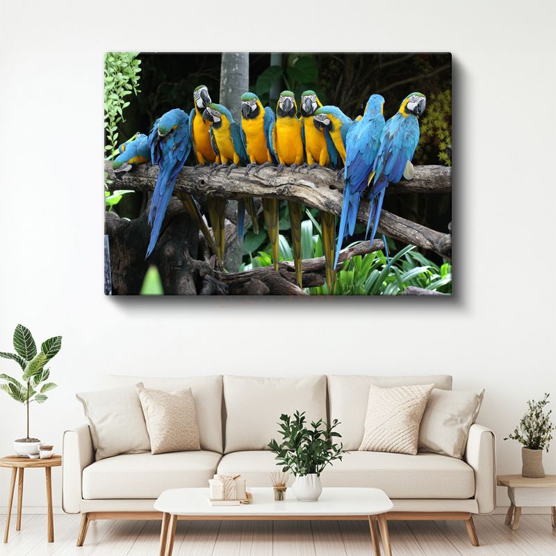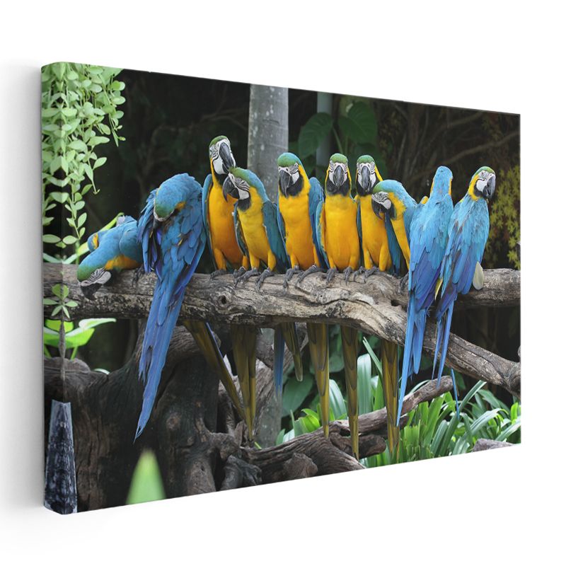 Ara Papağanları - Renkli Tropik Kuşlar Topluluğu Kanvas Tablo