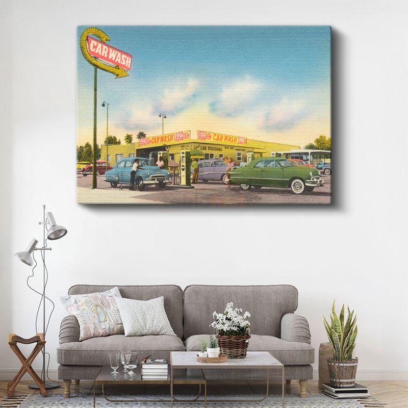 Araba Yıkama İstasyonu - 50'li Yılların Amerikan Klasiği Kanvas Tablo
