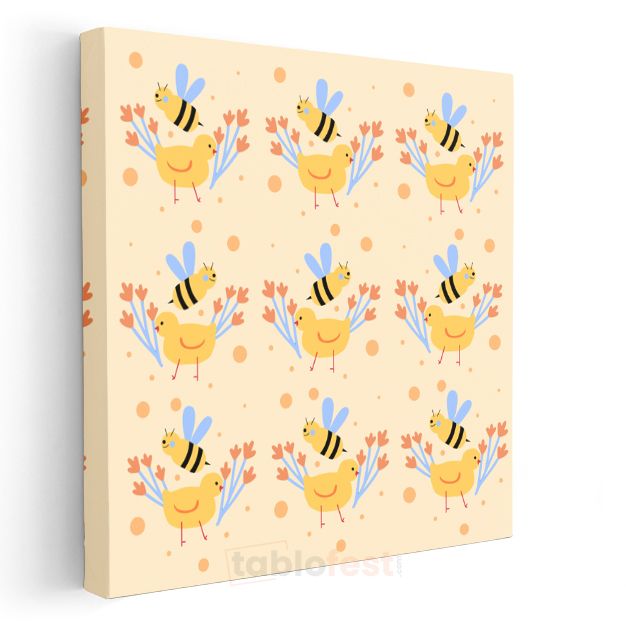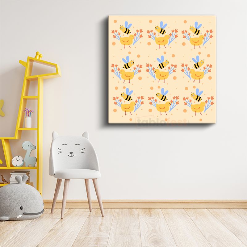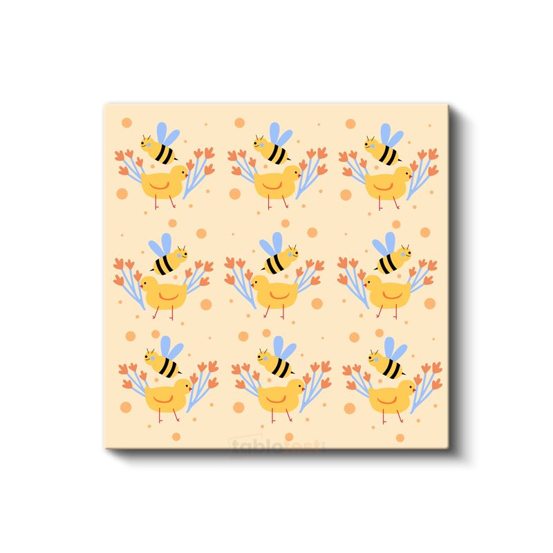 Arı ve Civciv - Bahar Dostları Deseni Kanvas Tablo