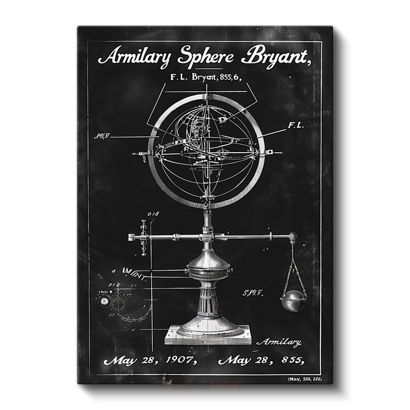 Armillary Küre - 1907 Tarihli Astronomik Alet Patenti Kanvas Tablo