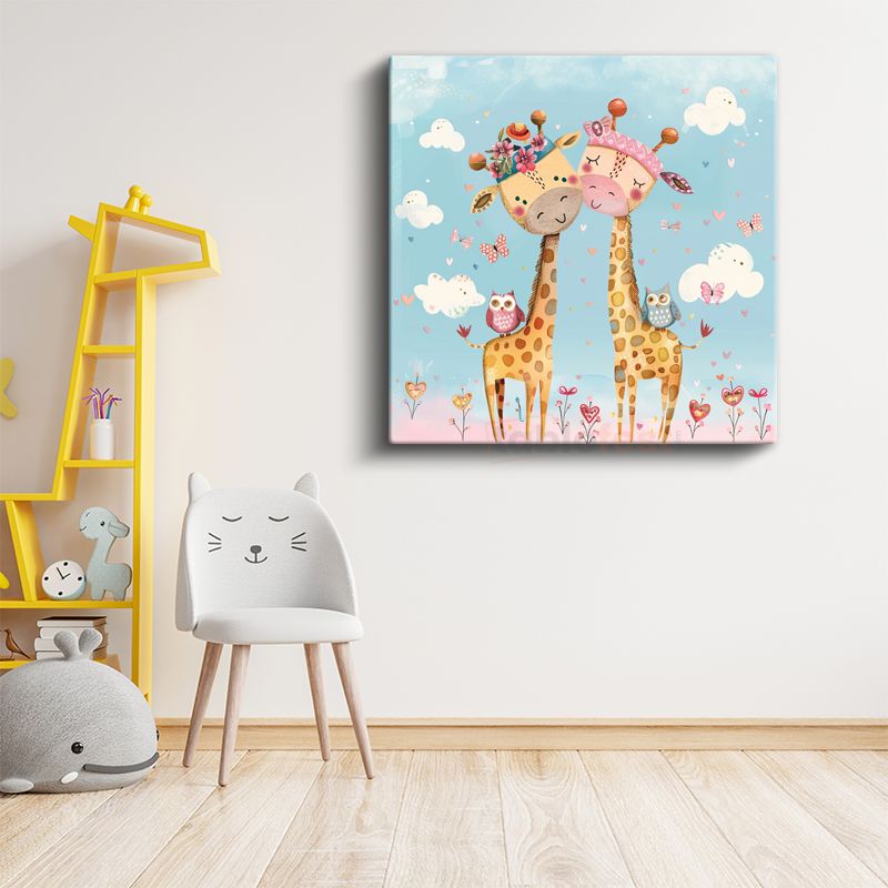 Aşık Zürafalar - Çiçekli Taçlı Dostlar Kanvas Tablo