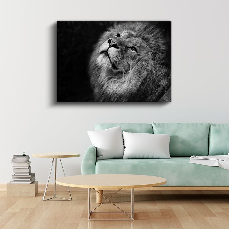 Asil Aslan - Yukarı Bakan Siyah Beyaz Portre Kanvas Tablo