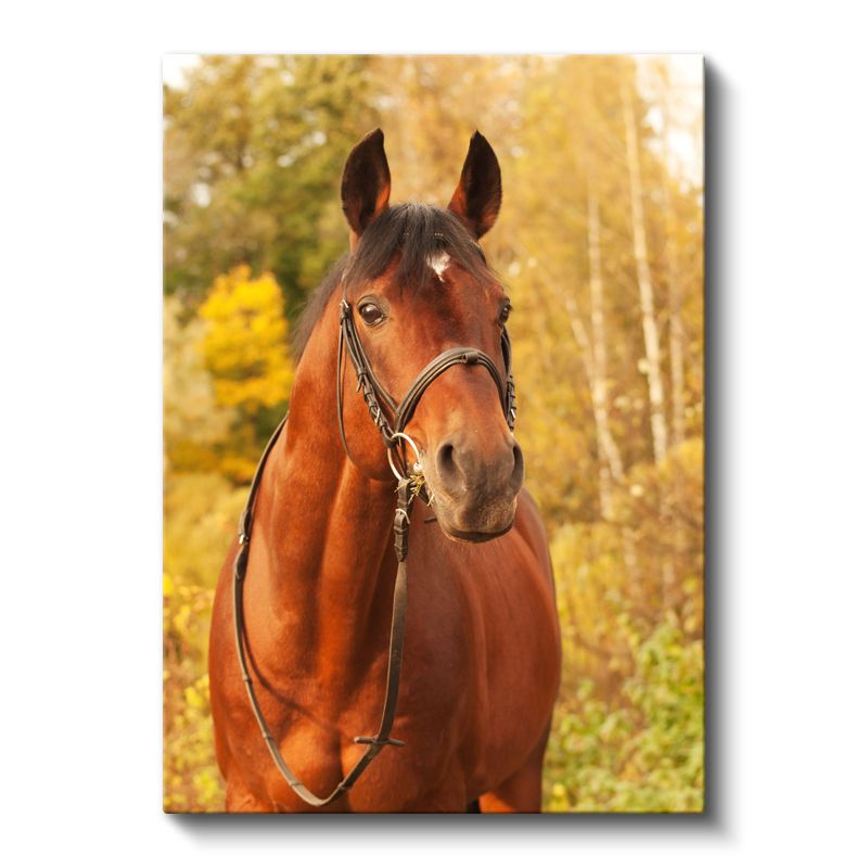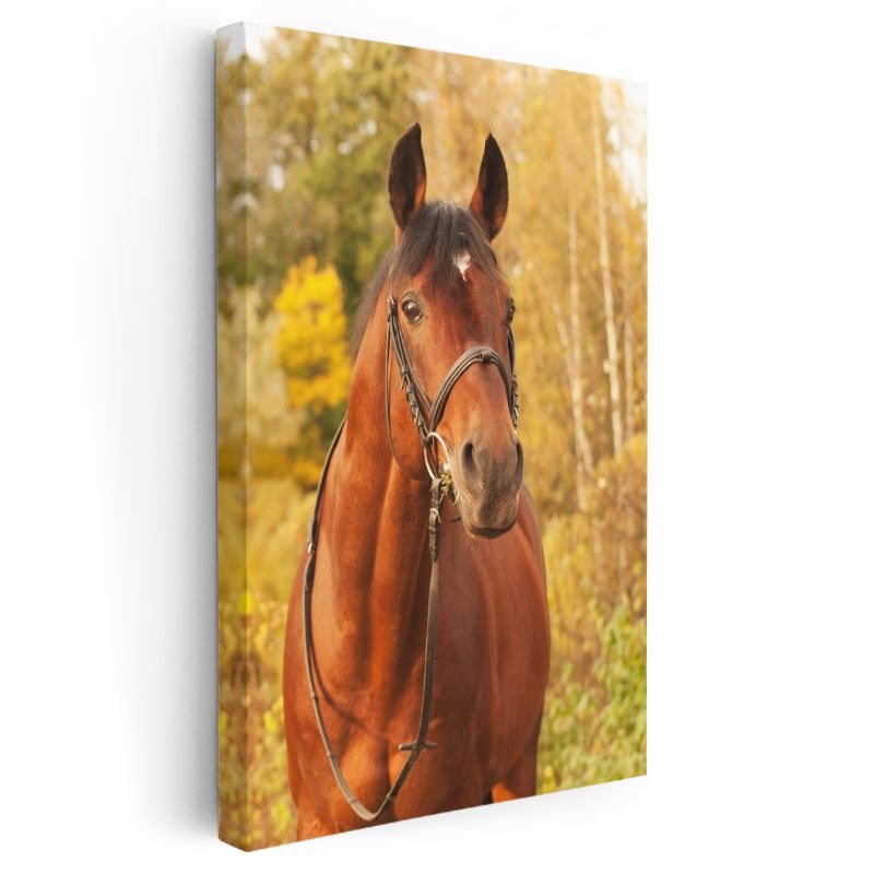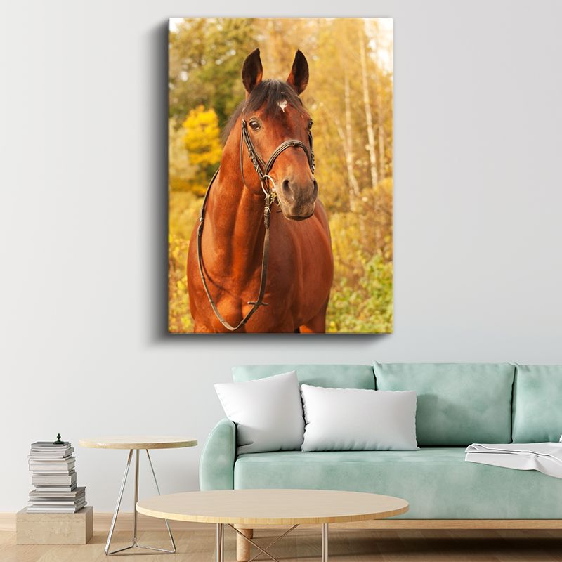 Asil At - Sonbahar Manzarasında Kahverengi Safkan Kanvas Tablo