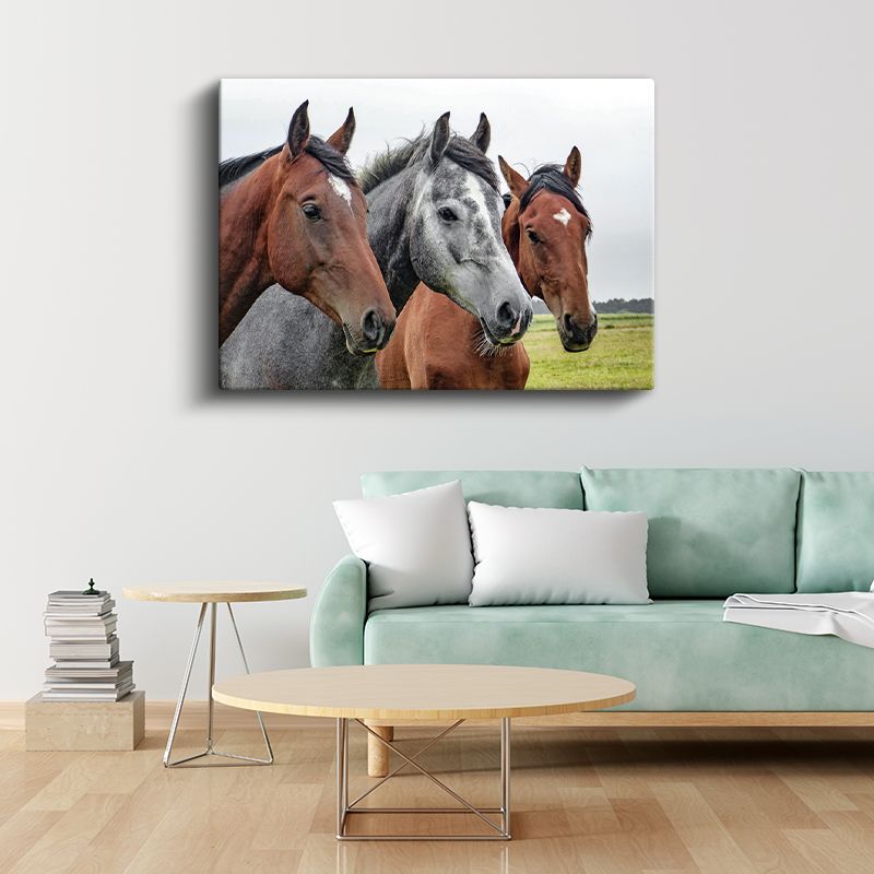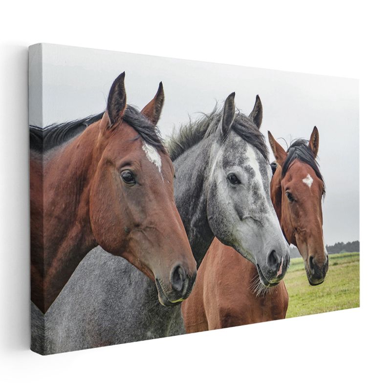 Asil Atlar - Üç Farklı Renkte Güçlü Dostlar Kanvas Tablo