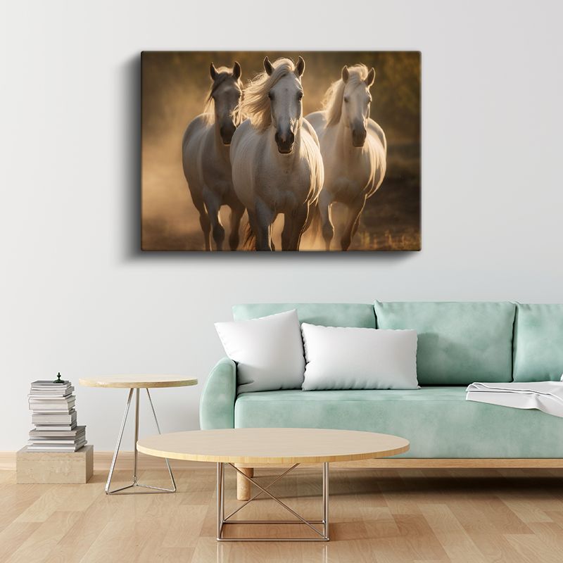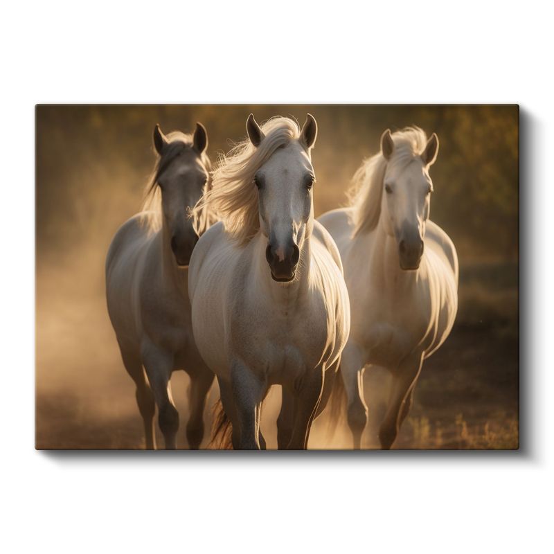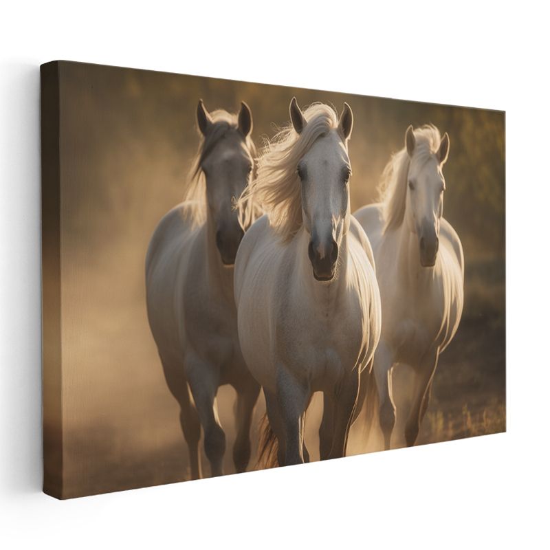 Asil Beyaz Atlar - Altın Işıklı Tozlu Patikada Kanvas Tablo
