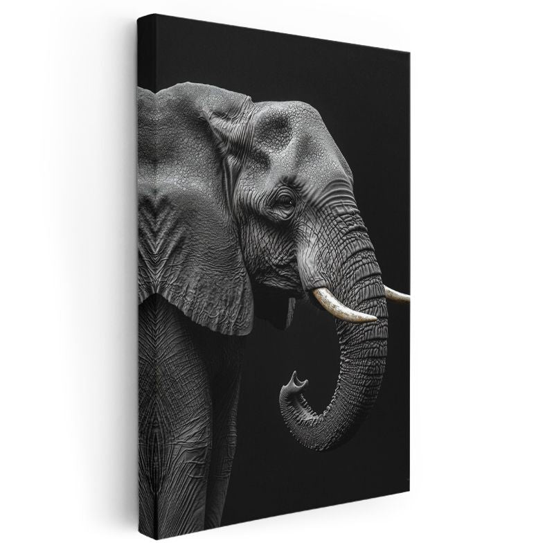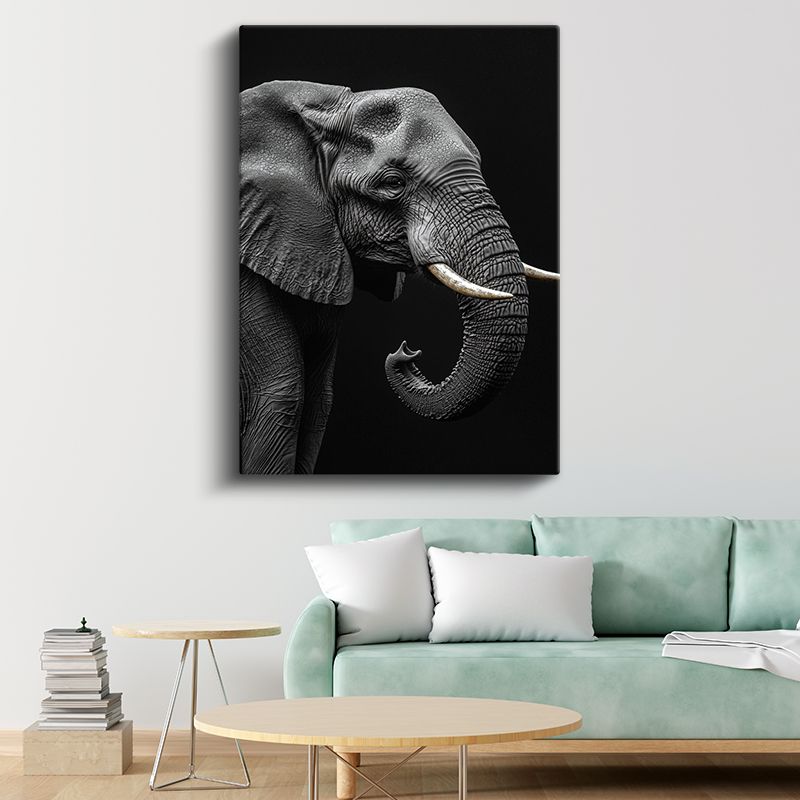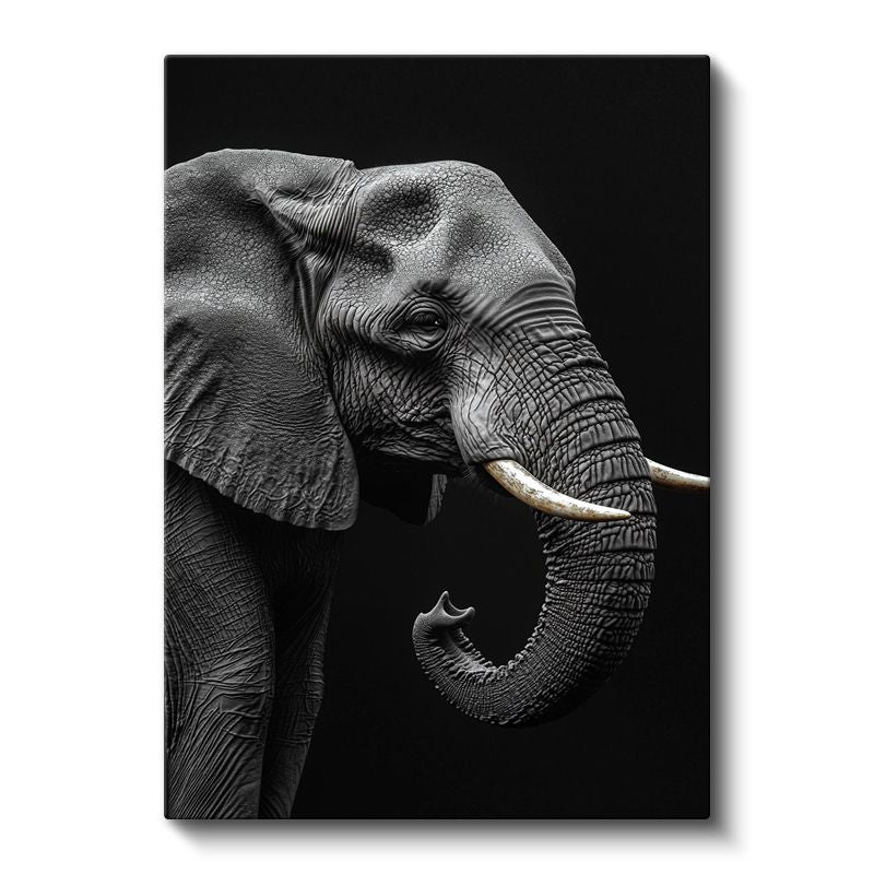 Asil Fil - Siyah Beyaz Detaylı Portre Kanvas Tablo