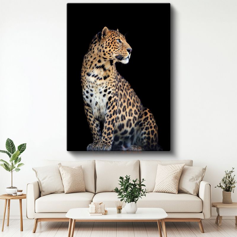 Asil Leopar - Zarif Duruşlu Benekli Yırtıcı Kanvas Tablo