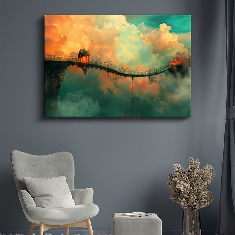 Asılı Köprü - Bulutlar Arasında Uzanan Gizemli Geçit Kanvas Tablo