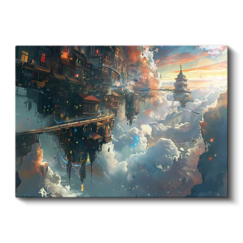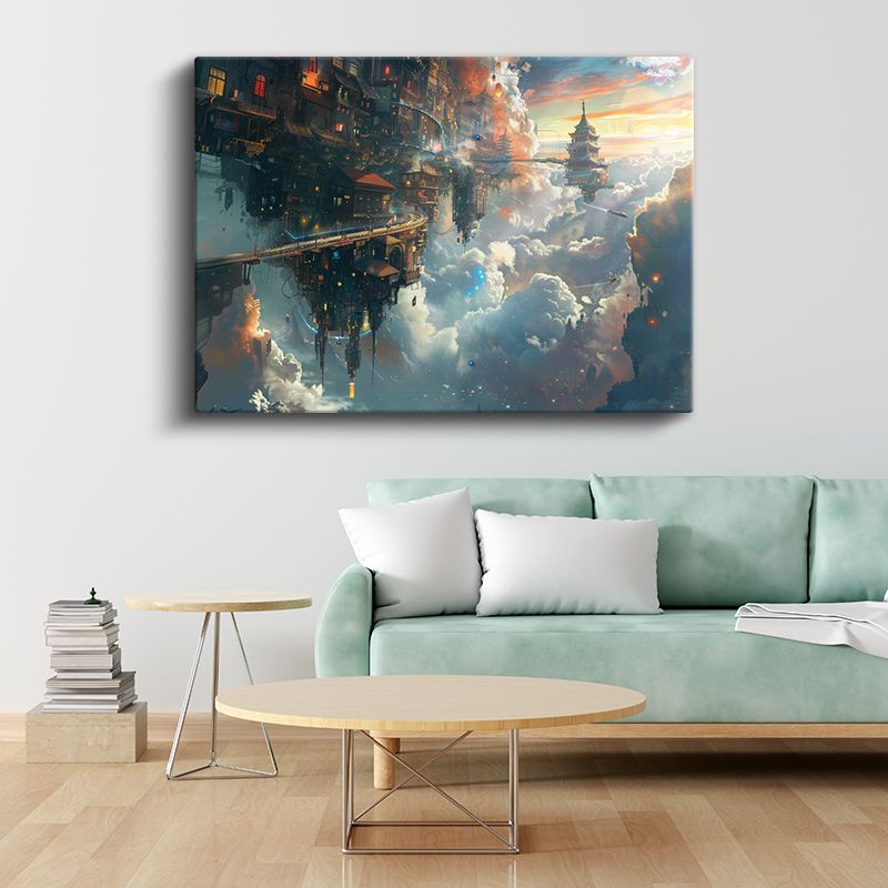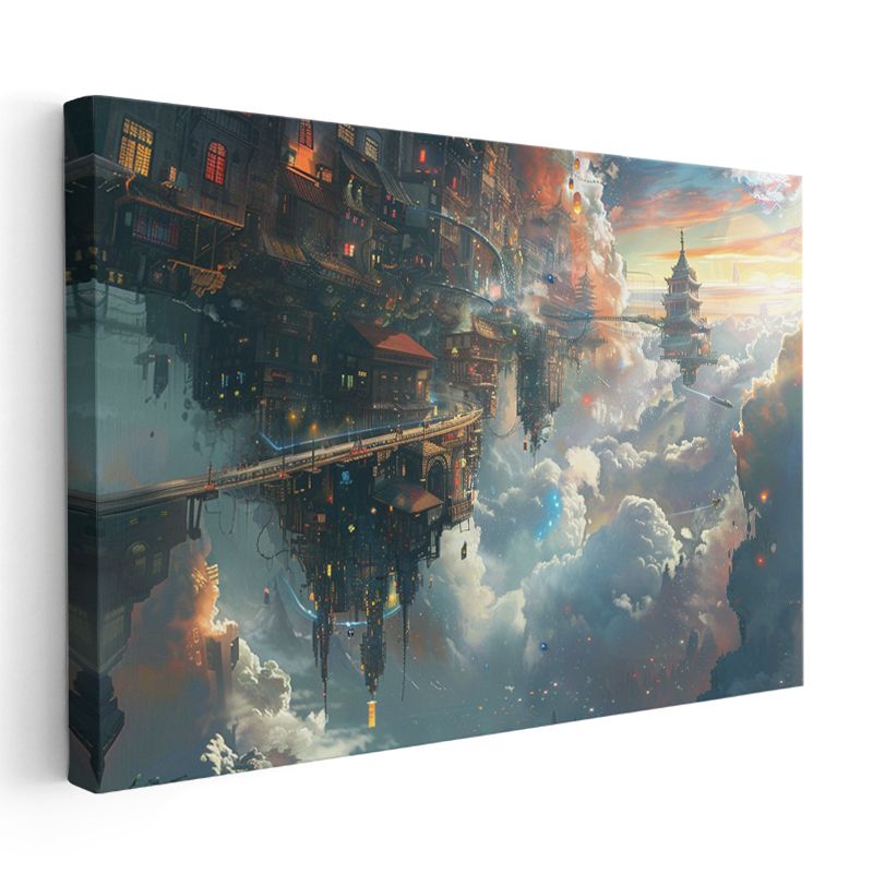 Asılı Krallık - Bulutlar Arasındaki Ters Şehir Kanvas Tablo
