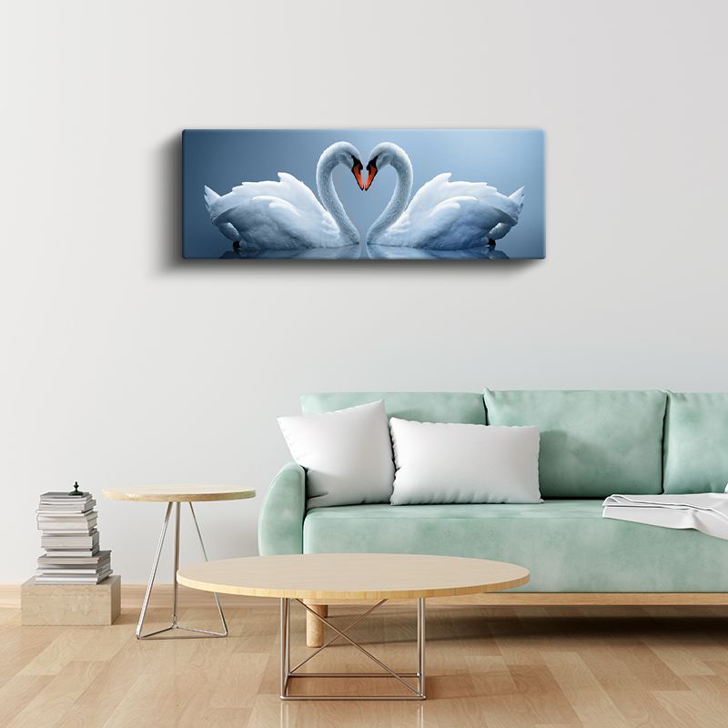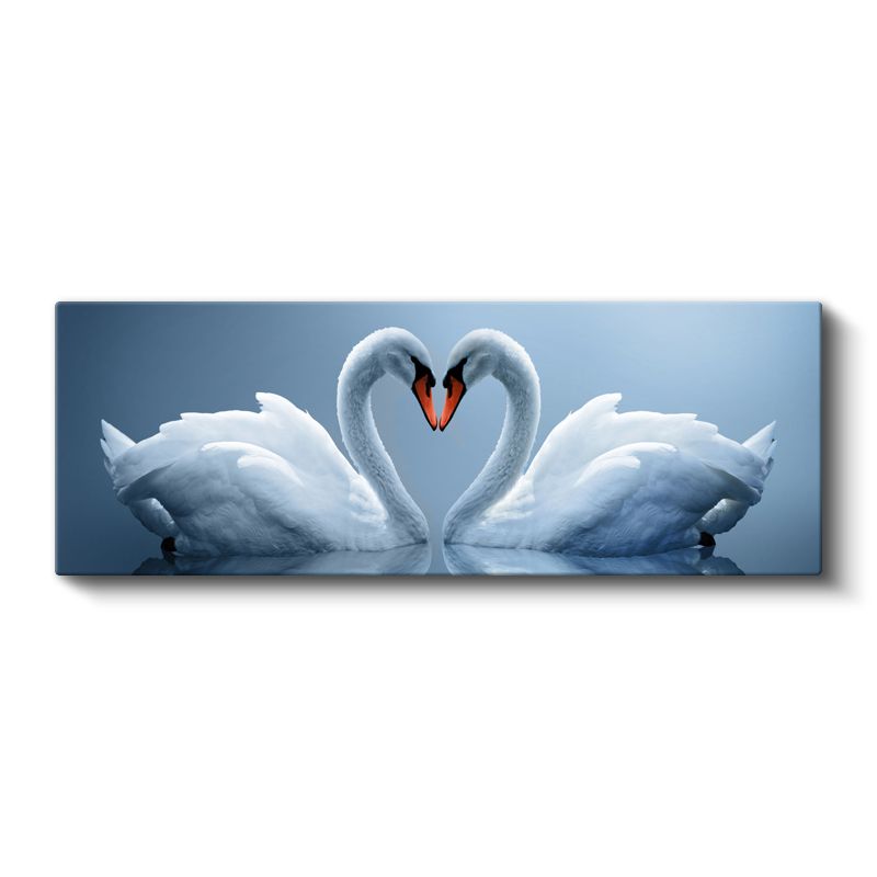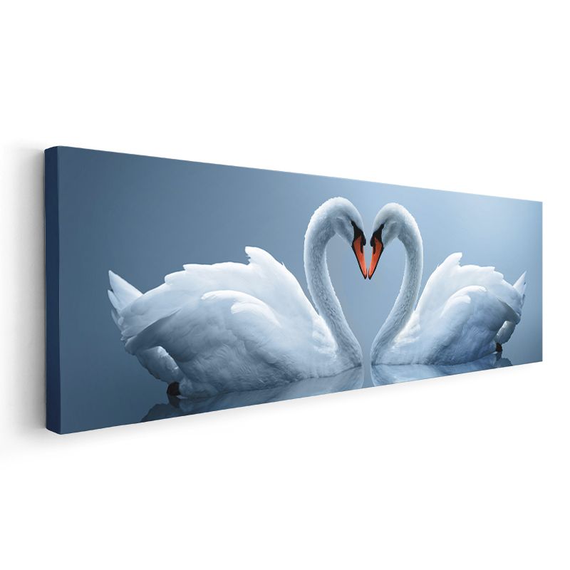 Aşk Kuğuları - Zarif Kalp Oluşturan Beyaz Kuğular Kanvas Tablo