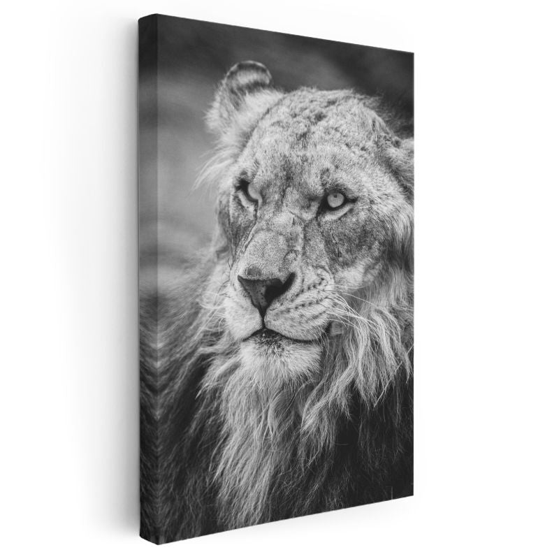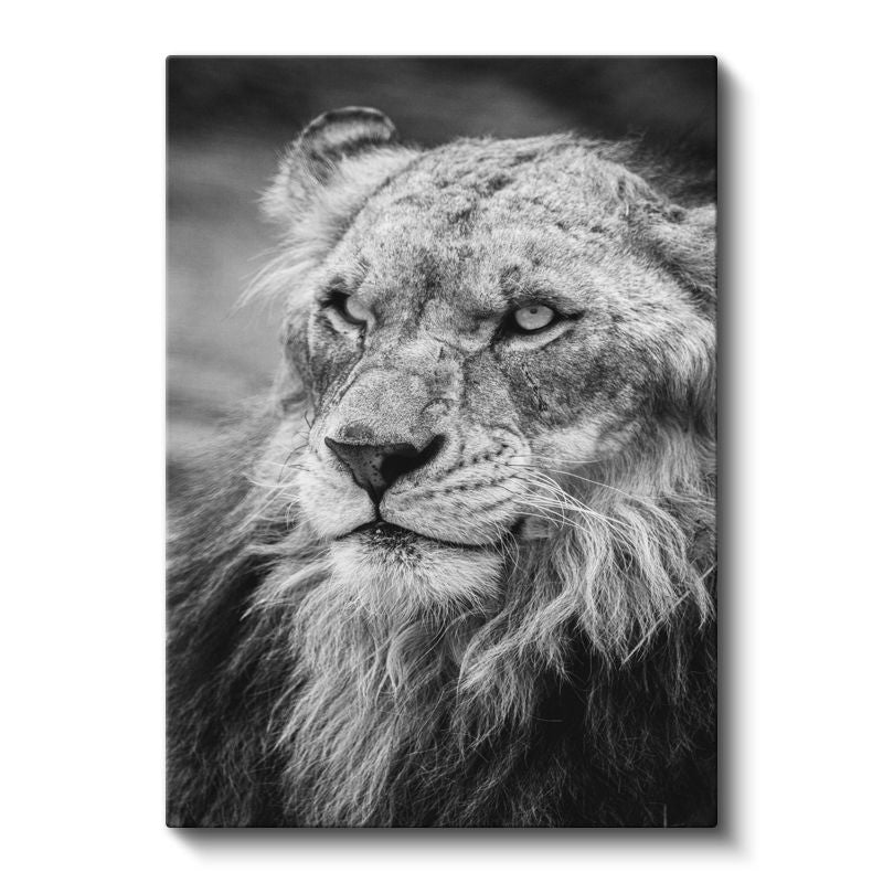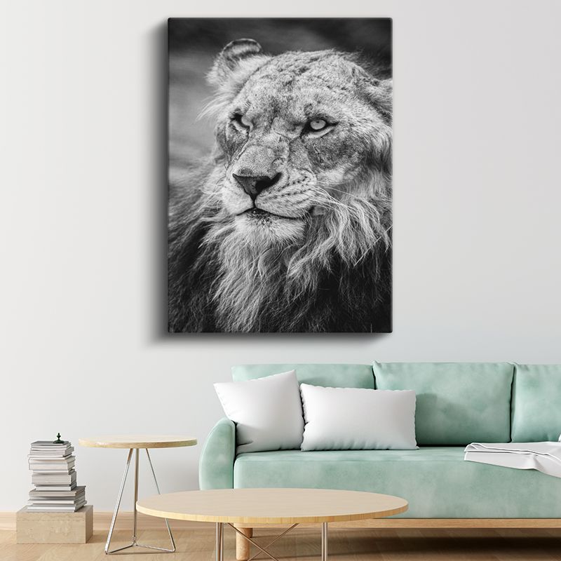 Aslan Bakışı - Siyah Beyaz Yeleli Kral Portresi Kanvas Tablo