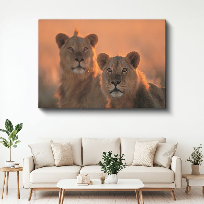 Aslan Çifti - Gün Batımında İki Kral Kanvas Tablo