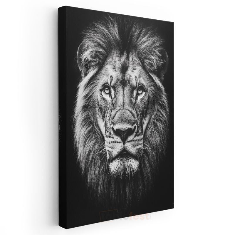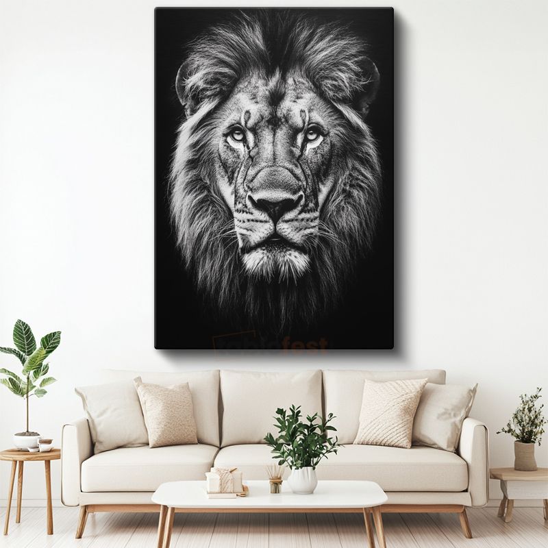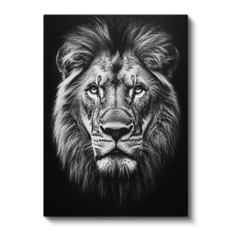 Aslan Portresi - Siyah Beyaz Yeleli Kral Kanvas Tablo