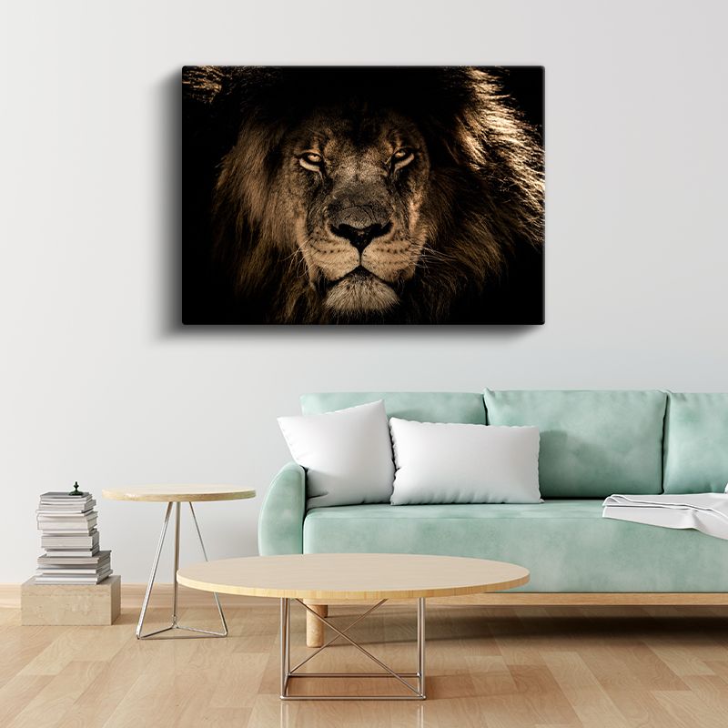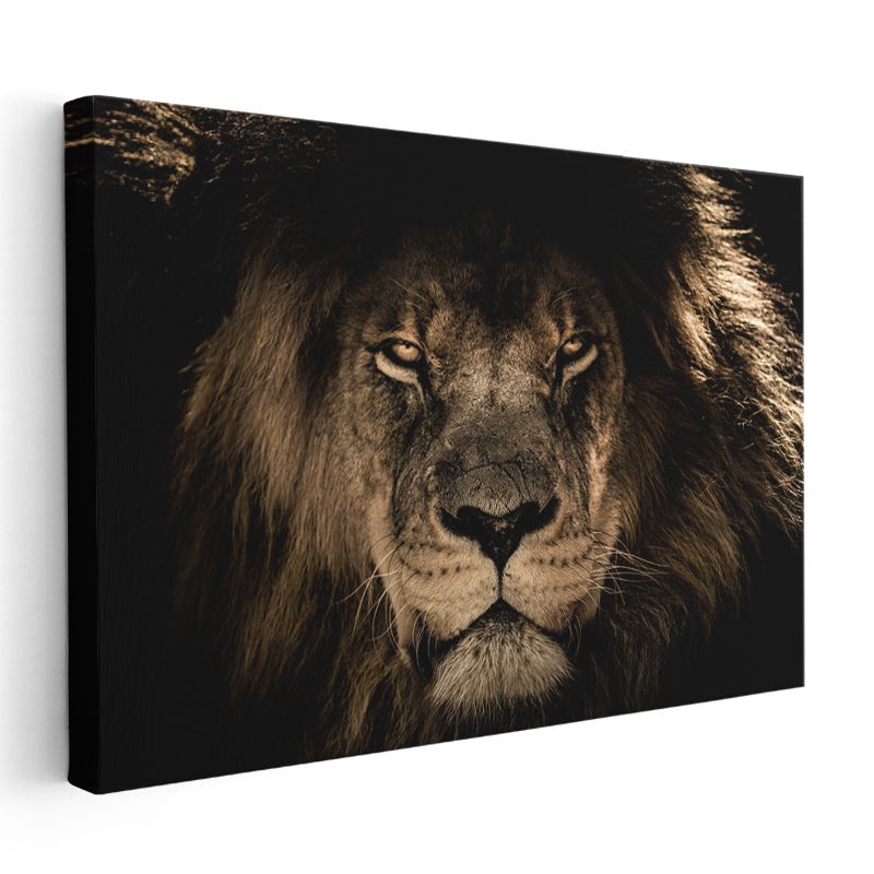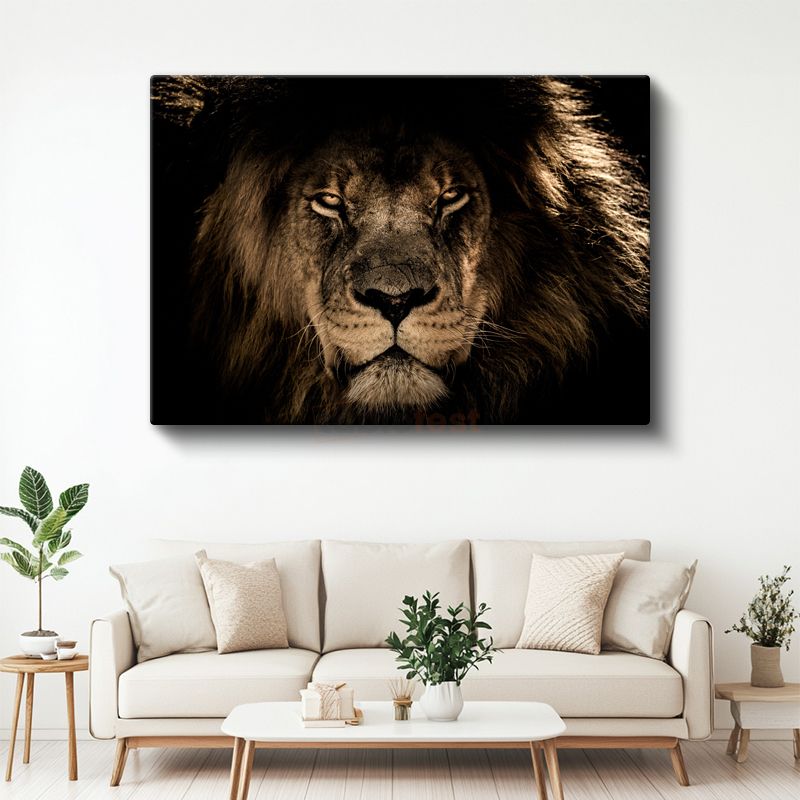 Aslan Yüzü - Karanlıkta Parlayan Gözlü Ormanlar Kralı Kanvas Tablo
