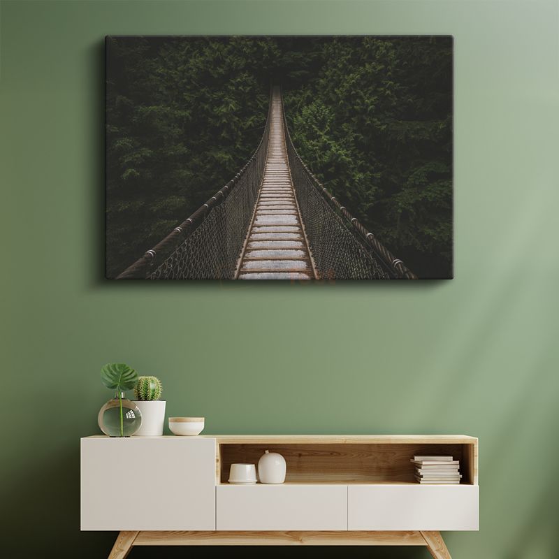 Asma Köprü - Ormanın Derinliklerine Uzanan Yol Kanvas Tablo