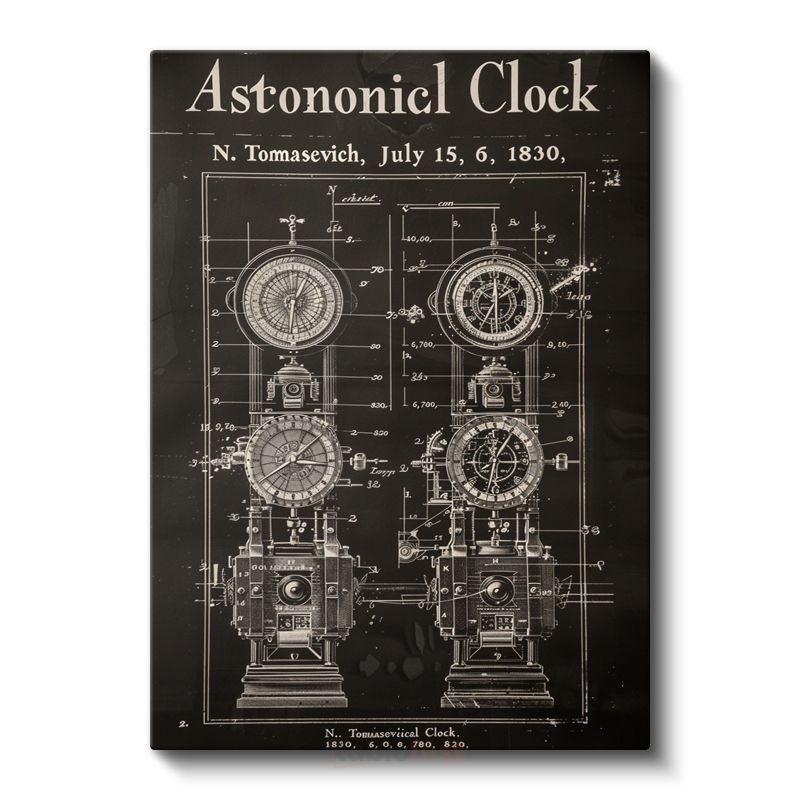 Astronomik Saat - Antik Zaman Ölçer Patent Çizimi Kanvas Tablo