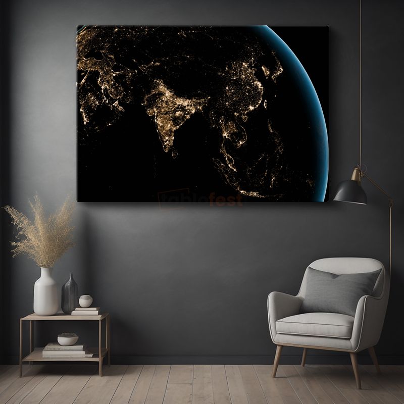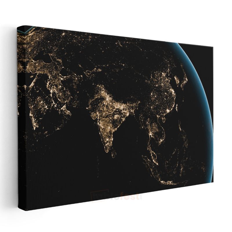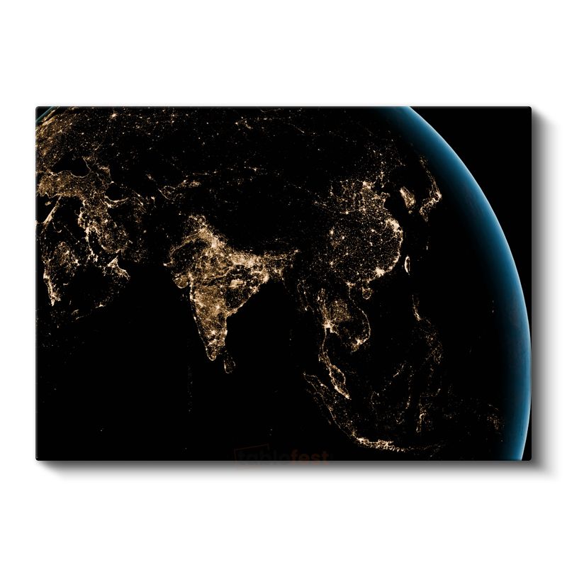 Asya Gecesi - Uzaydan Kıta Görünümü Kanvas Tablo