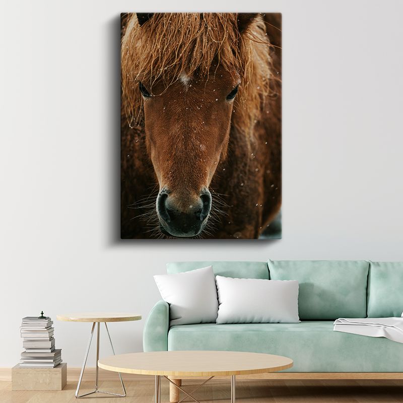 At Portresi - Kahverengi Yeleli Yakın Çekim Kanvas Tablo