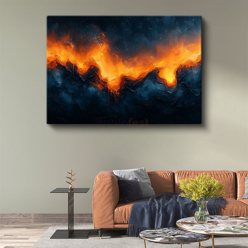 Ateş Dalgaları - Turuncu Alev Kanvas Tablo