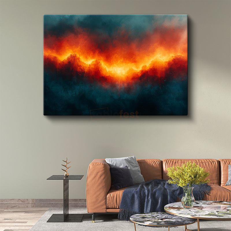 Ateş Dalgası - Dramatik Kontrast Soyut Kanvas Tablo