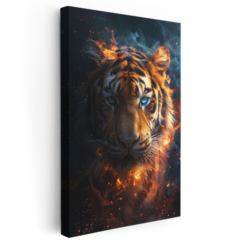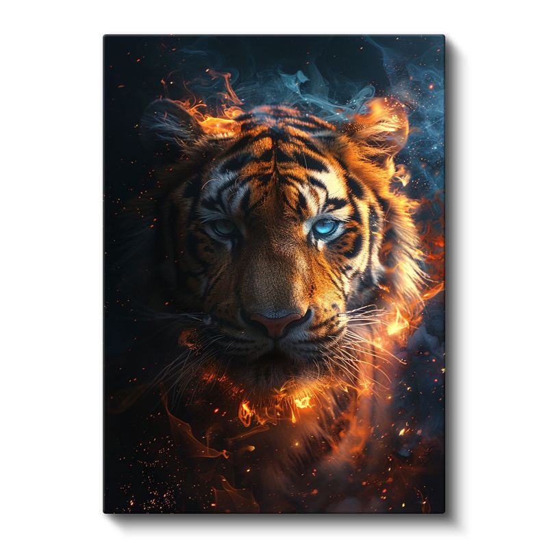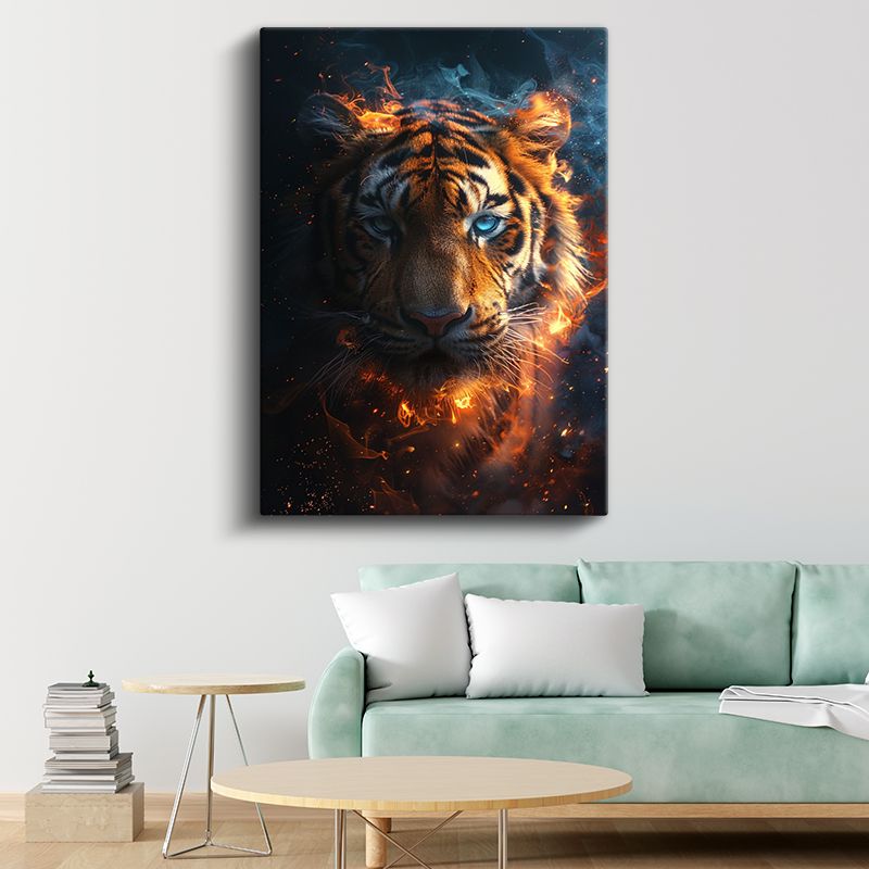 Ateş Kaplanı - Alev Efektli Mavi Gözlü Yırtıcı Kanvas Tablo
