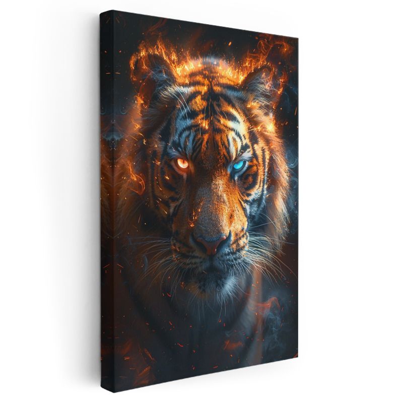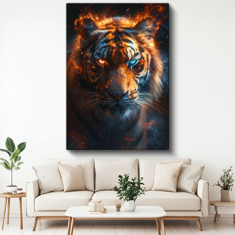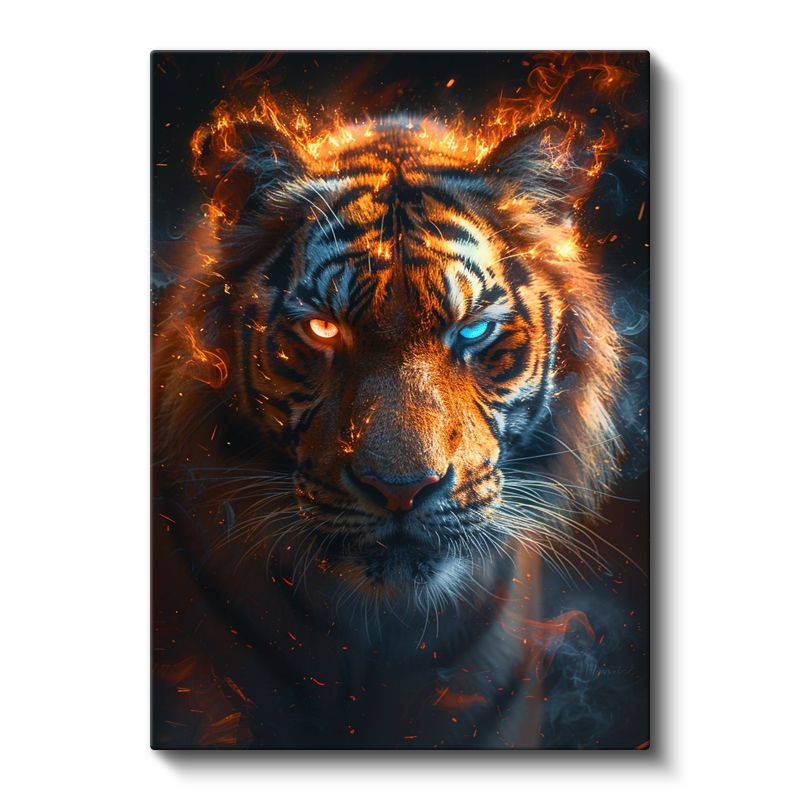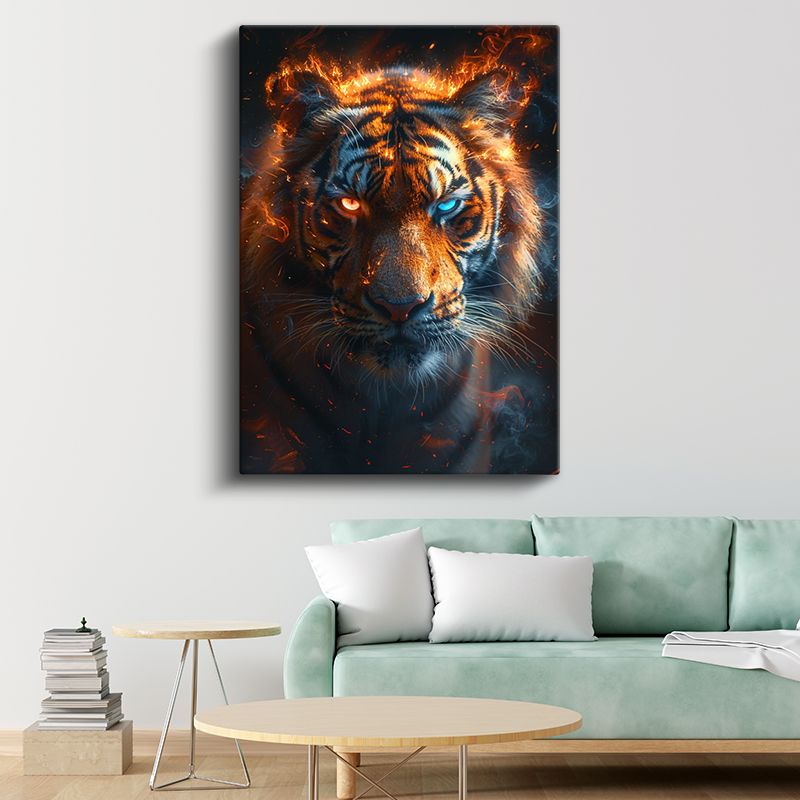 Ateş Kaplanı - Alev Efektli Yırtıcı Bakışlar Kanvas Tablo