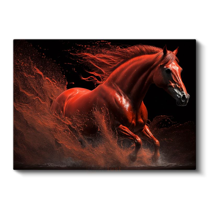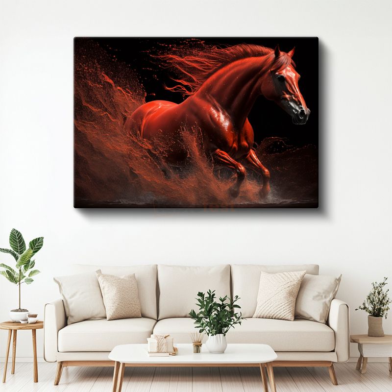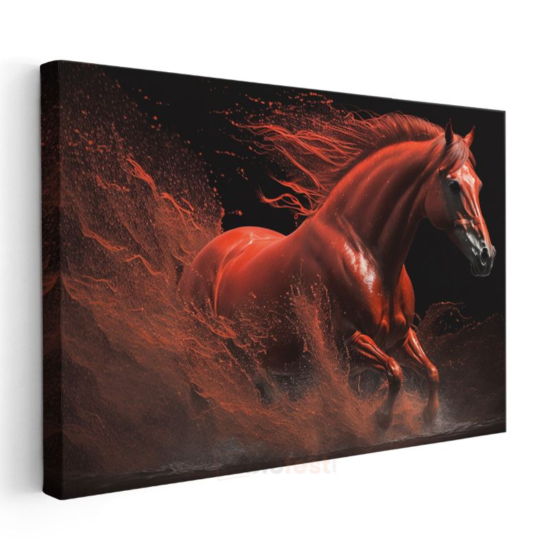 Ateş Rengi At - Kırmızı Sıçramalarla Tutkulu Koşu Kanvas Tablo