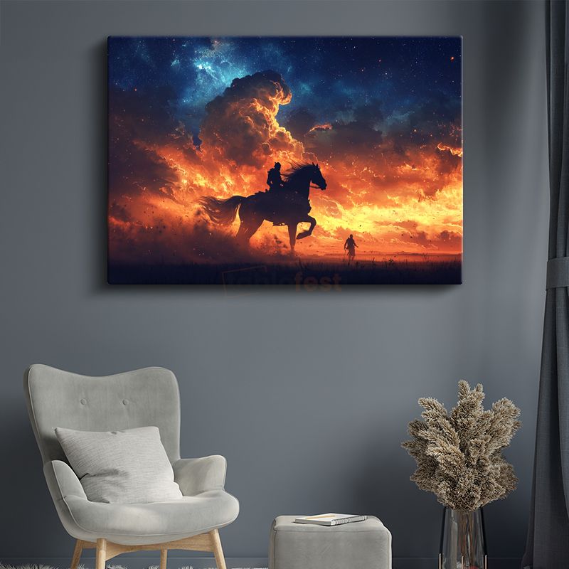 Ateş Süvarisi - Alev Gökyüzünde İlerleyen Binici Kanvas Tablo