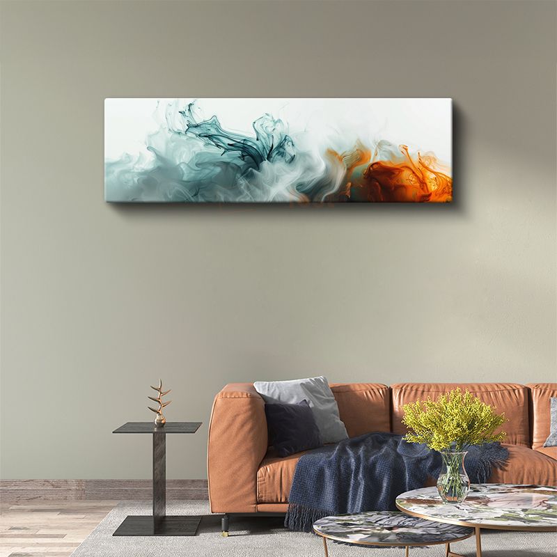 Ateş ve Buz - Turkuaz Turuncu Akışkan Sanat Kanvas Tablo