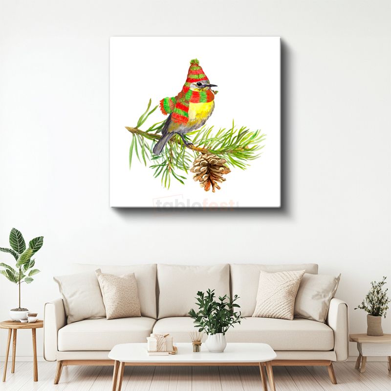 Atkılı Kuş - Kış Dalında Sevimli Ziyaretçi Kanvas Tablo