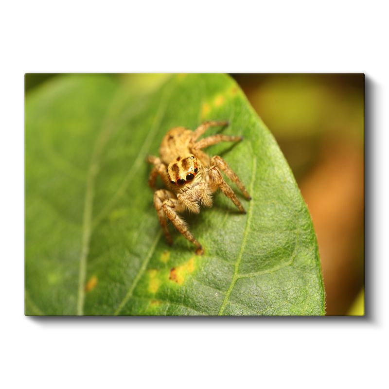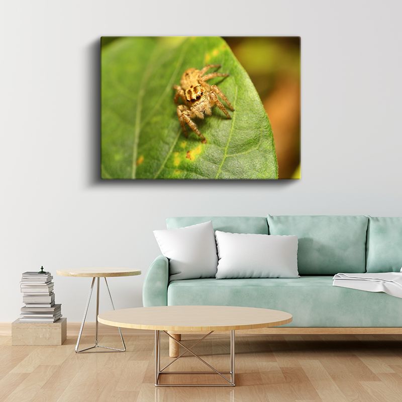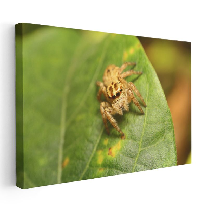 Atlayıcı Örümcek - Yaprak Üzerinde Mikro Avcı Kanvas Tablo