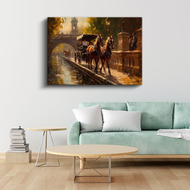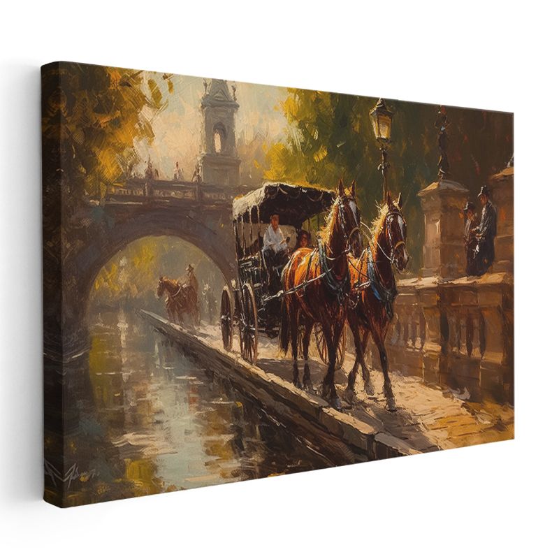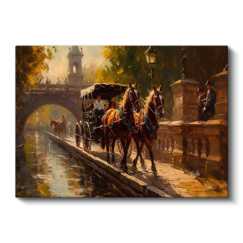 Atlı Araba - Tarihi Kanal Kenarında Nostaljik Yolculuk Kanvas Tablo