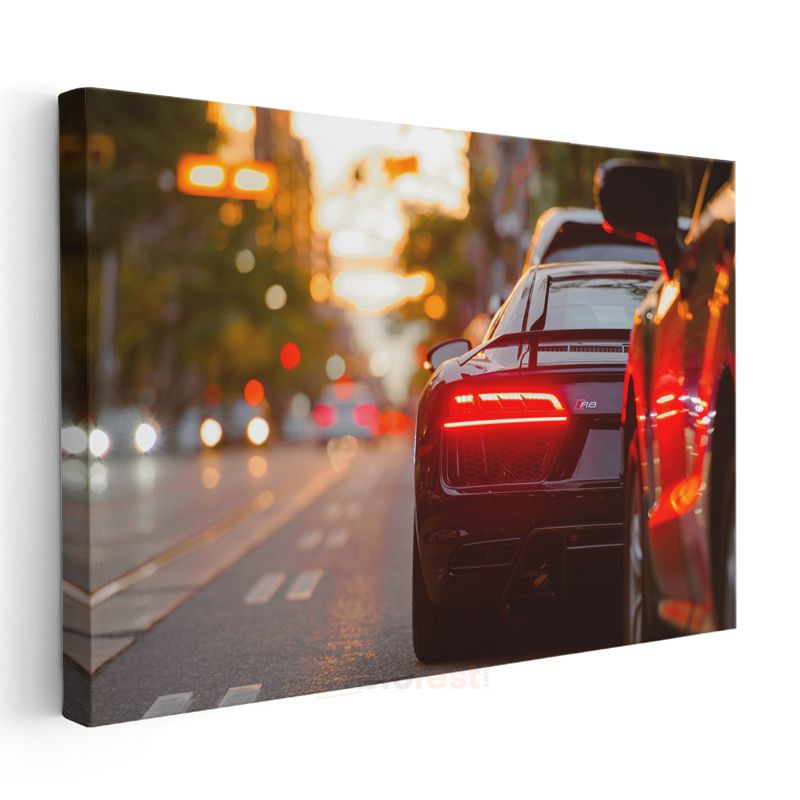 Audi R8 Gece Görünümü - Şehir Işıklarında Parlayan Süper Otomobil Kanvas Tablo
