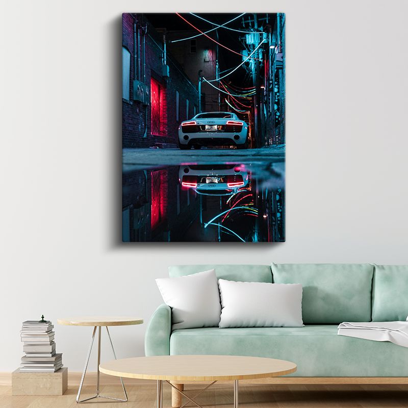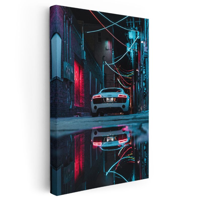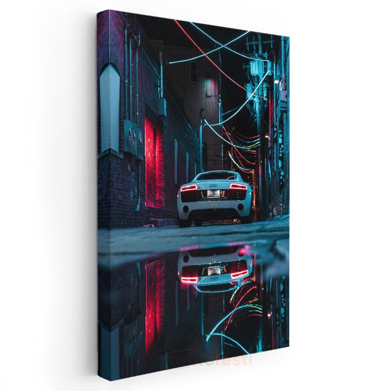 Audi R8 - Gece Sokağında Neon Işıkları Altında Lüks Spor Otomobil Kanvas Tablo